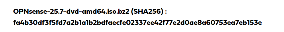 - Compare the output with the SHA256 checksum provided on the OPNsense download page. They must match exactly.