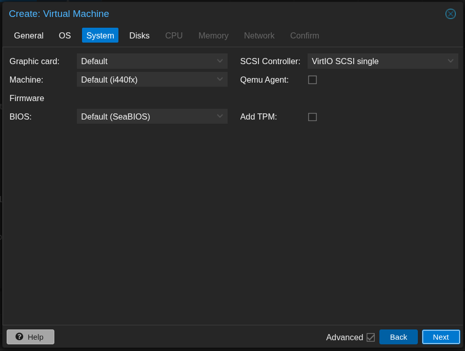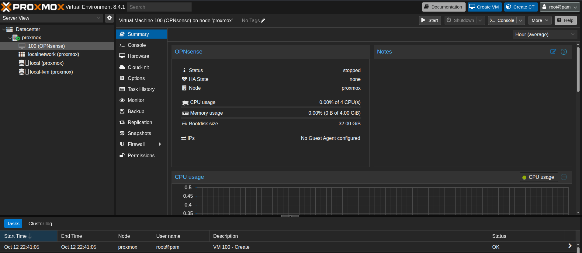 - Click “Create VM” and give it a name (e.g., OPNsense).