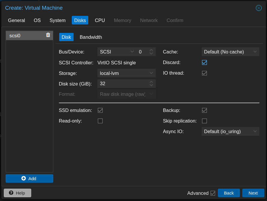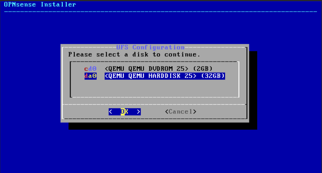 da0 <QEMU QEMU Harddisk 25>(32 GB).