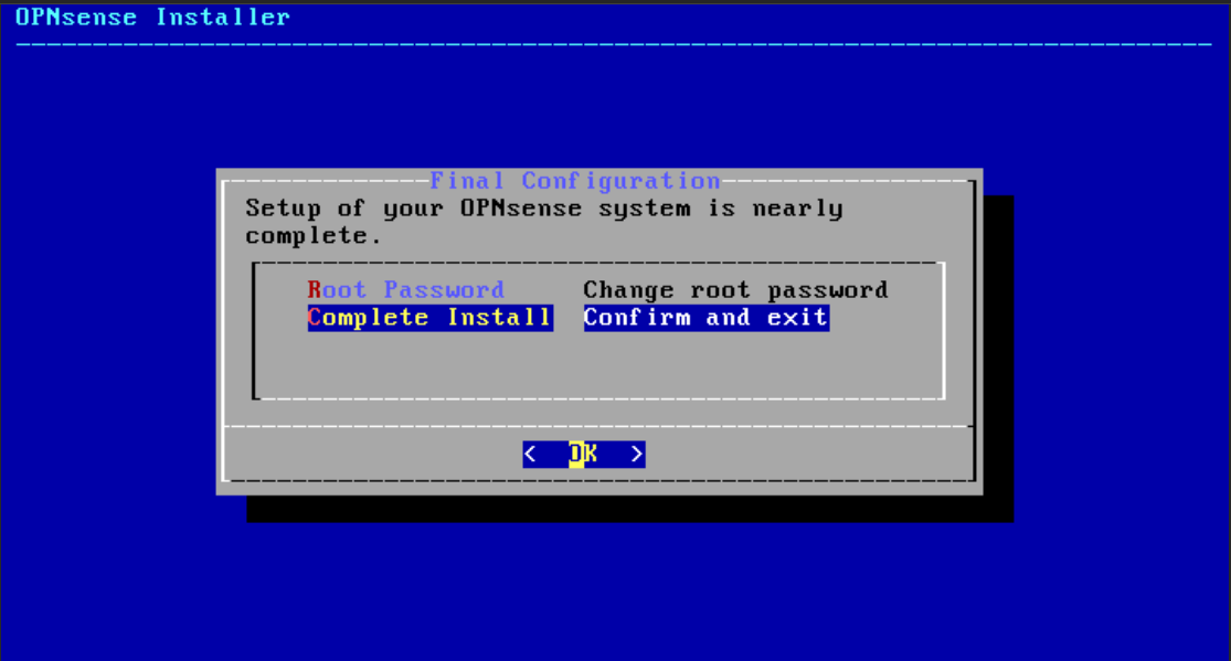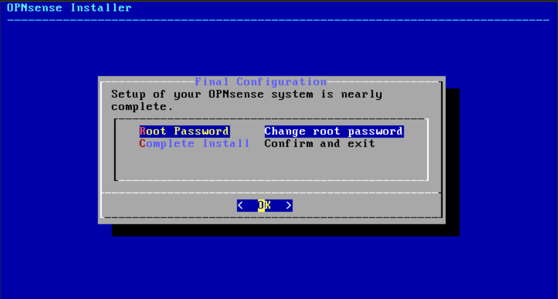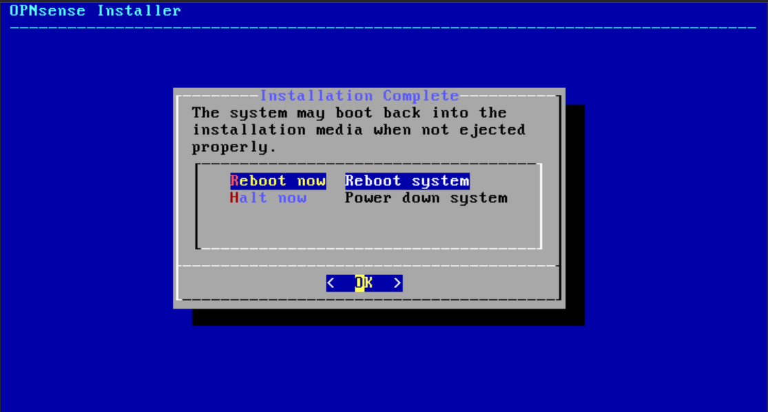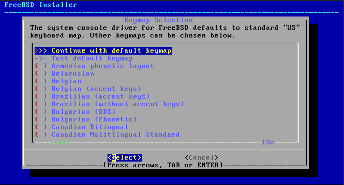 - Once the OPNsense VM is launched, the FreeBSD installer screen will appear. Choose “Continue with default keymap.”