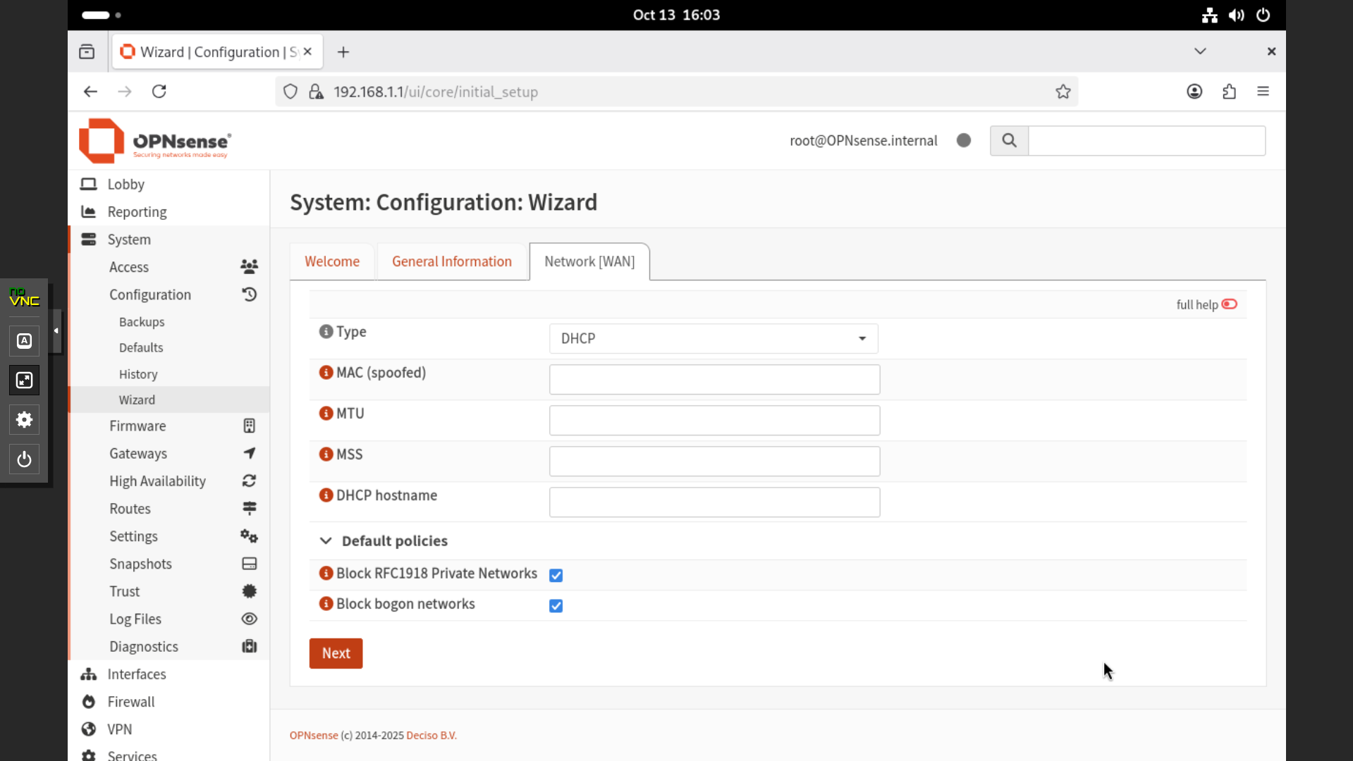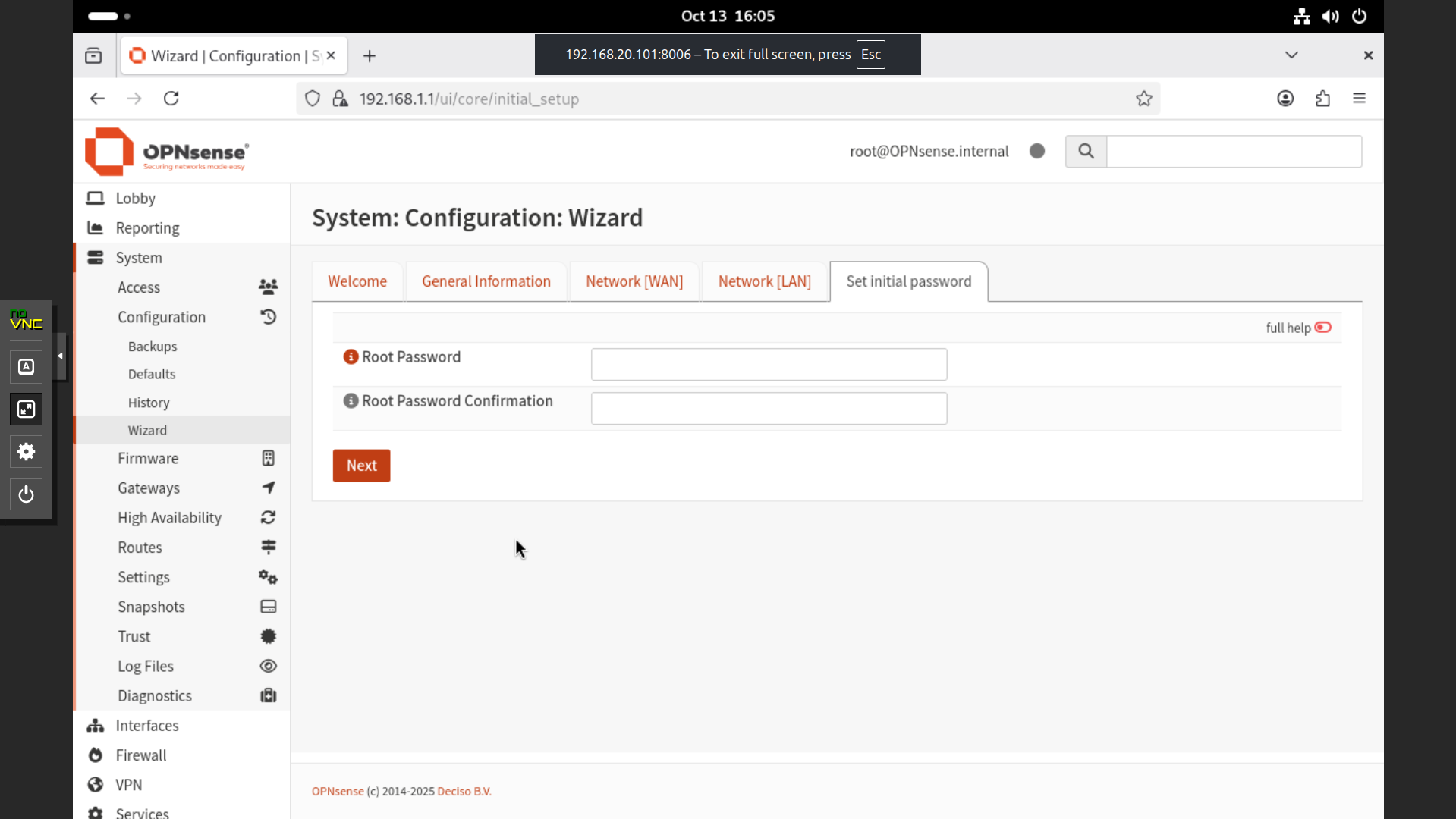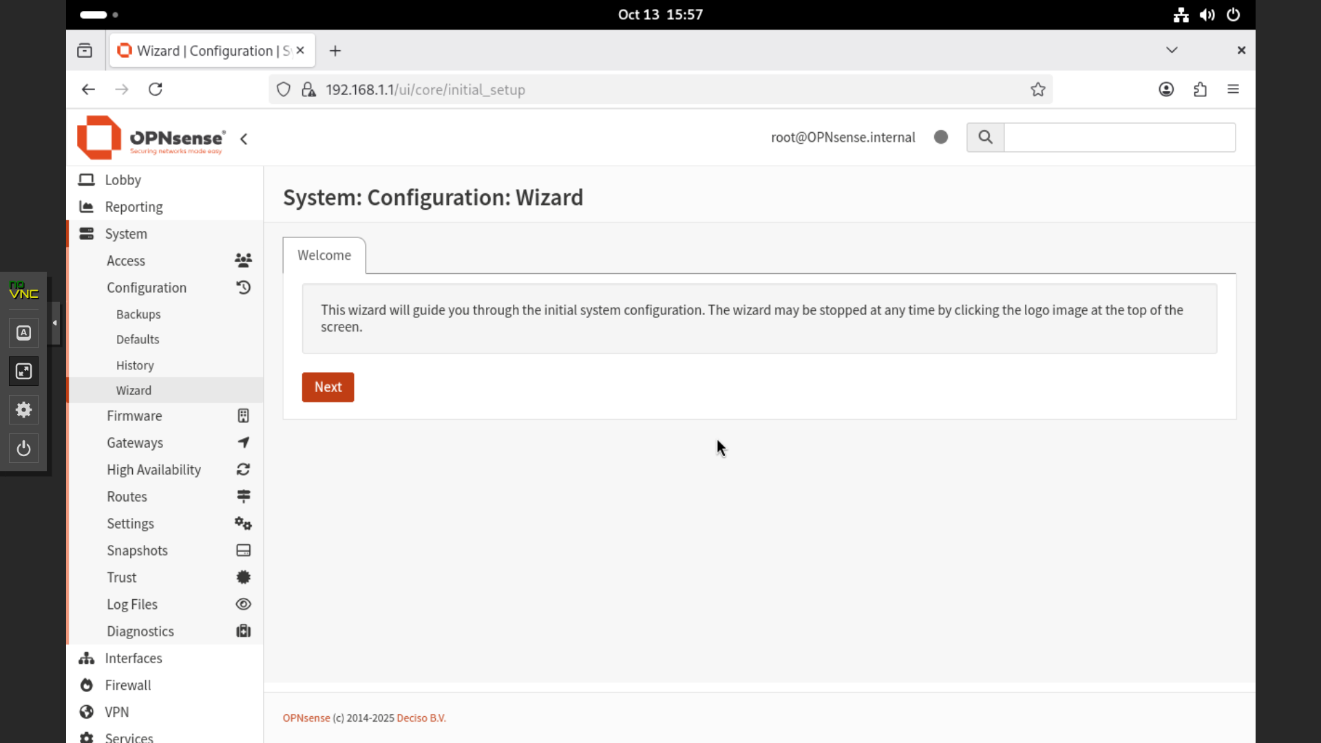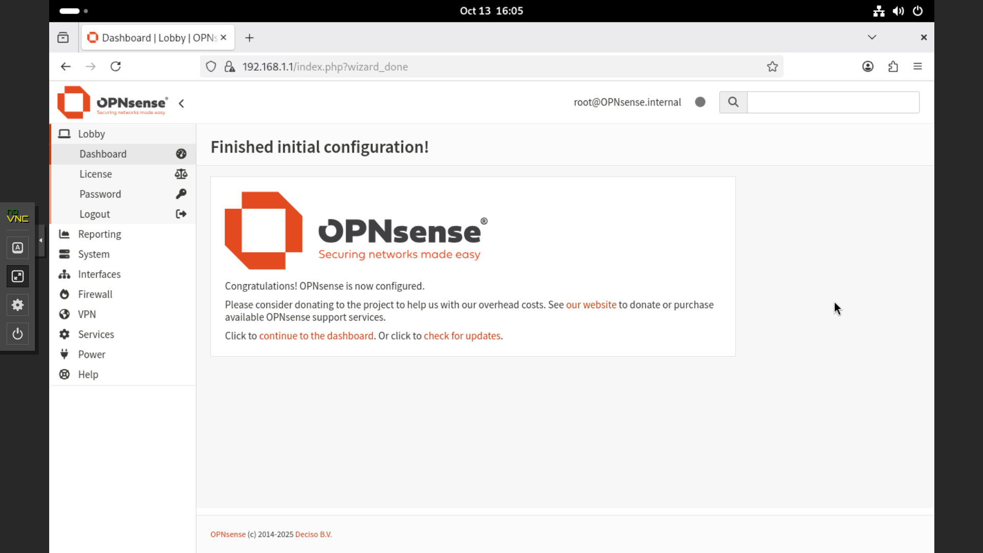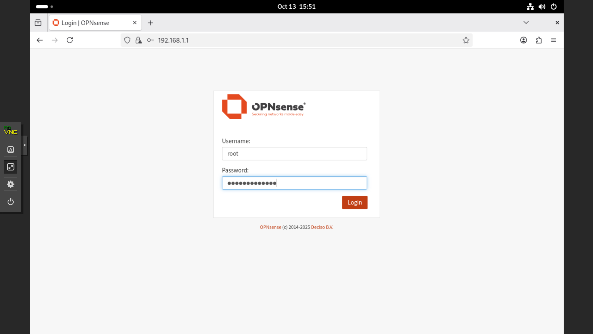 - Log in to the OPNsense web UI from the Debian internal admin VM.