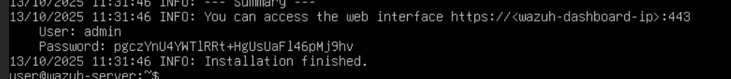 - Once the installation is complete, note the details provided for accessing the Wazuh web interface.