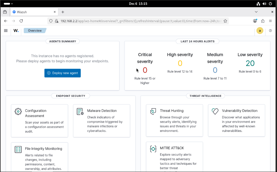 https://192.168.2.2:443 - Enter the login credentials provided after the Wazuh installation.