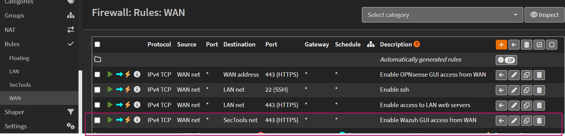 This securely allows only HTTPS traffic to flow from your laptop network to the Wazuh VLAN.