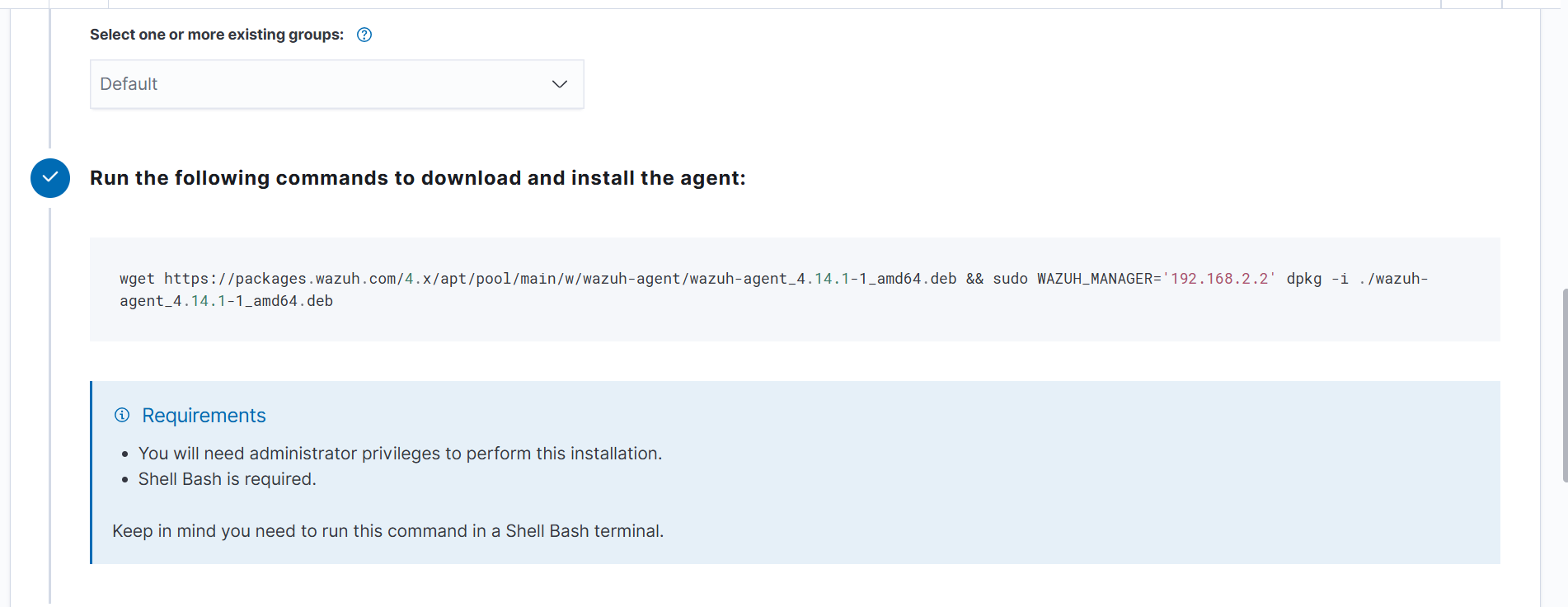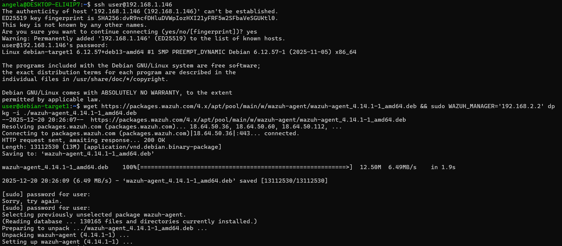 - Run the copied command on the Debian target VM to install the Wazuh agent.
