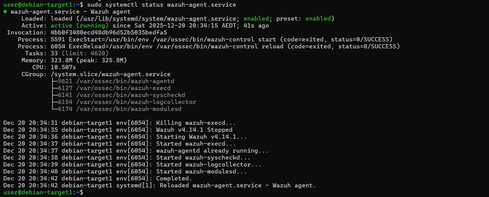 - Verify the agent status by running: sudo systemctl status wazuh-agent.service