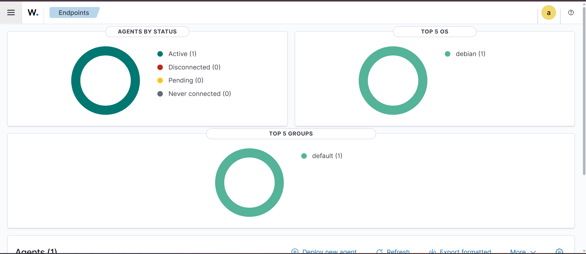 - Return to Agent Management → Summary in the Wazuh UI. You should now see one active agent, representing the Debian VM.